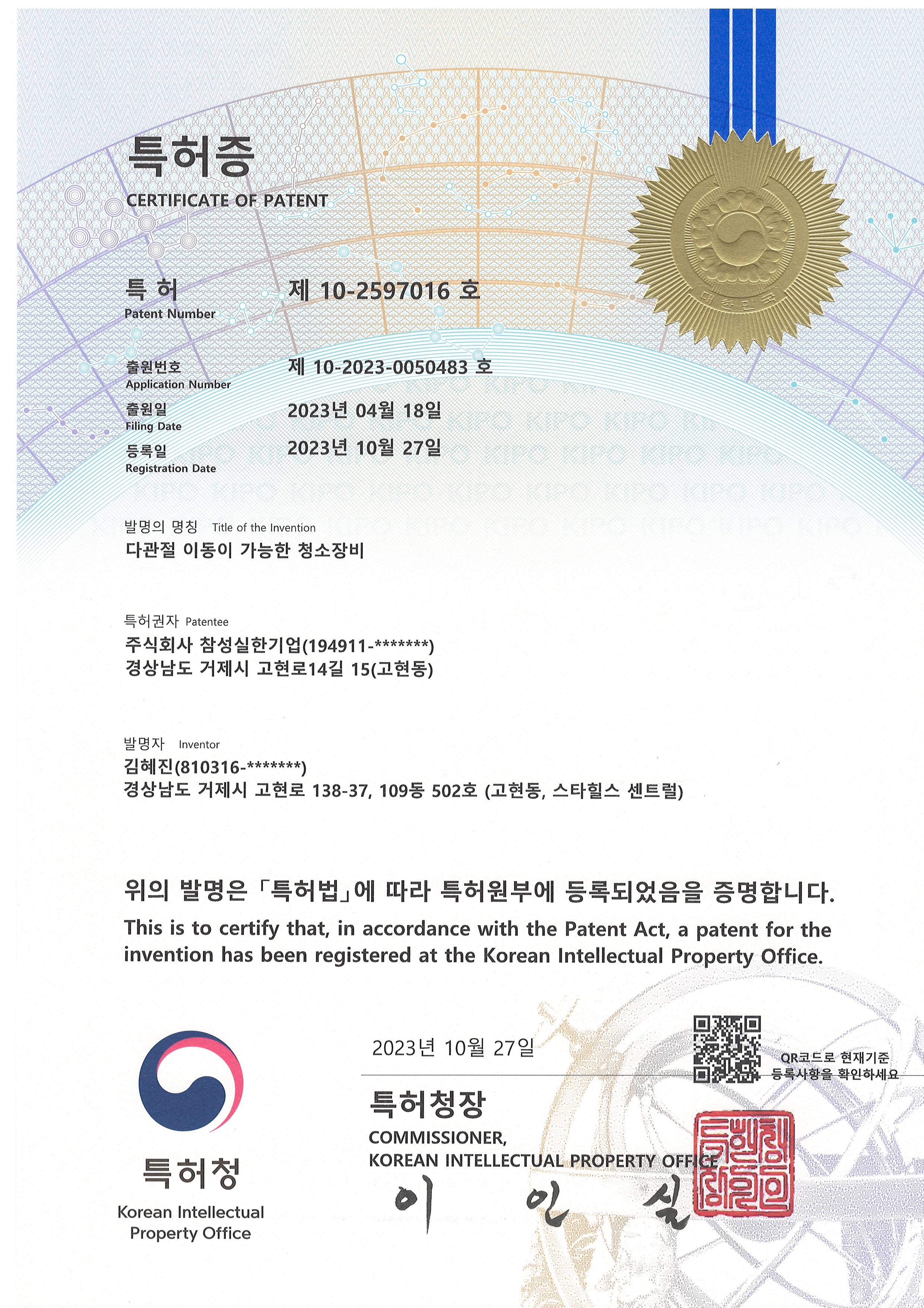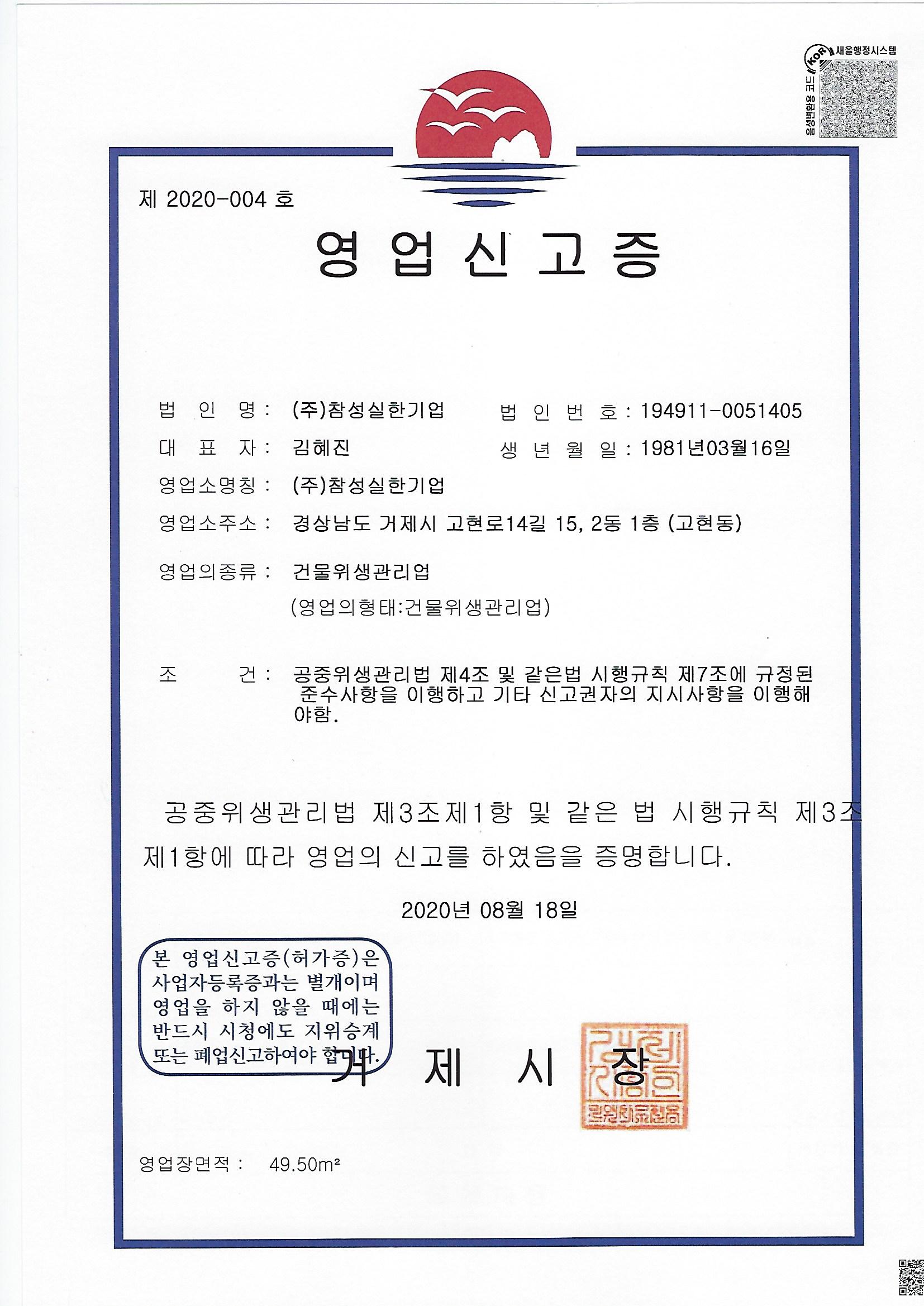 믿을 수 있는 청소특공대의 다양한 특허증과 허가서류들