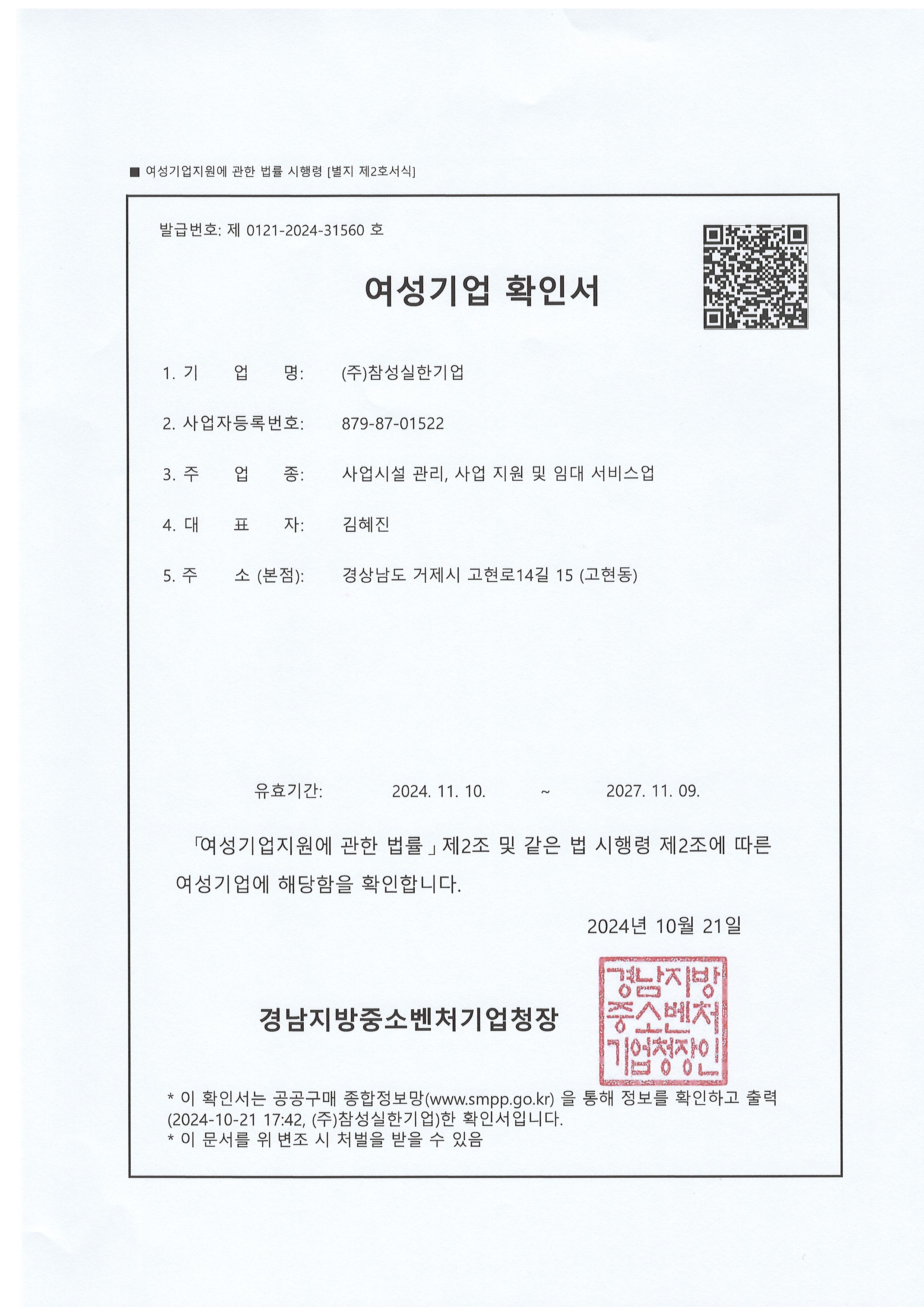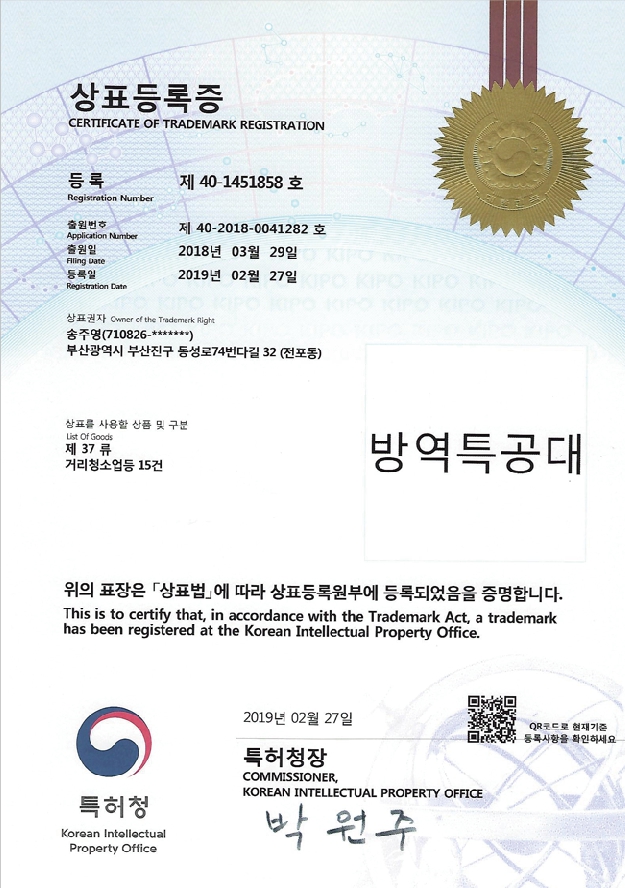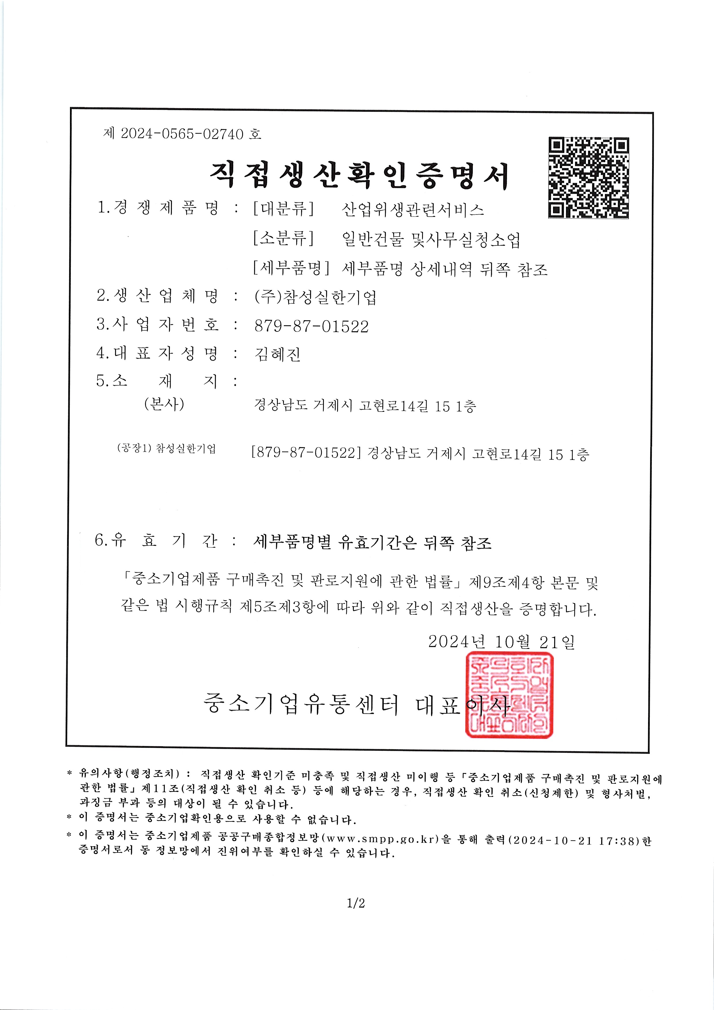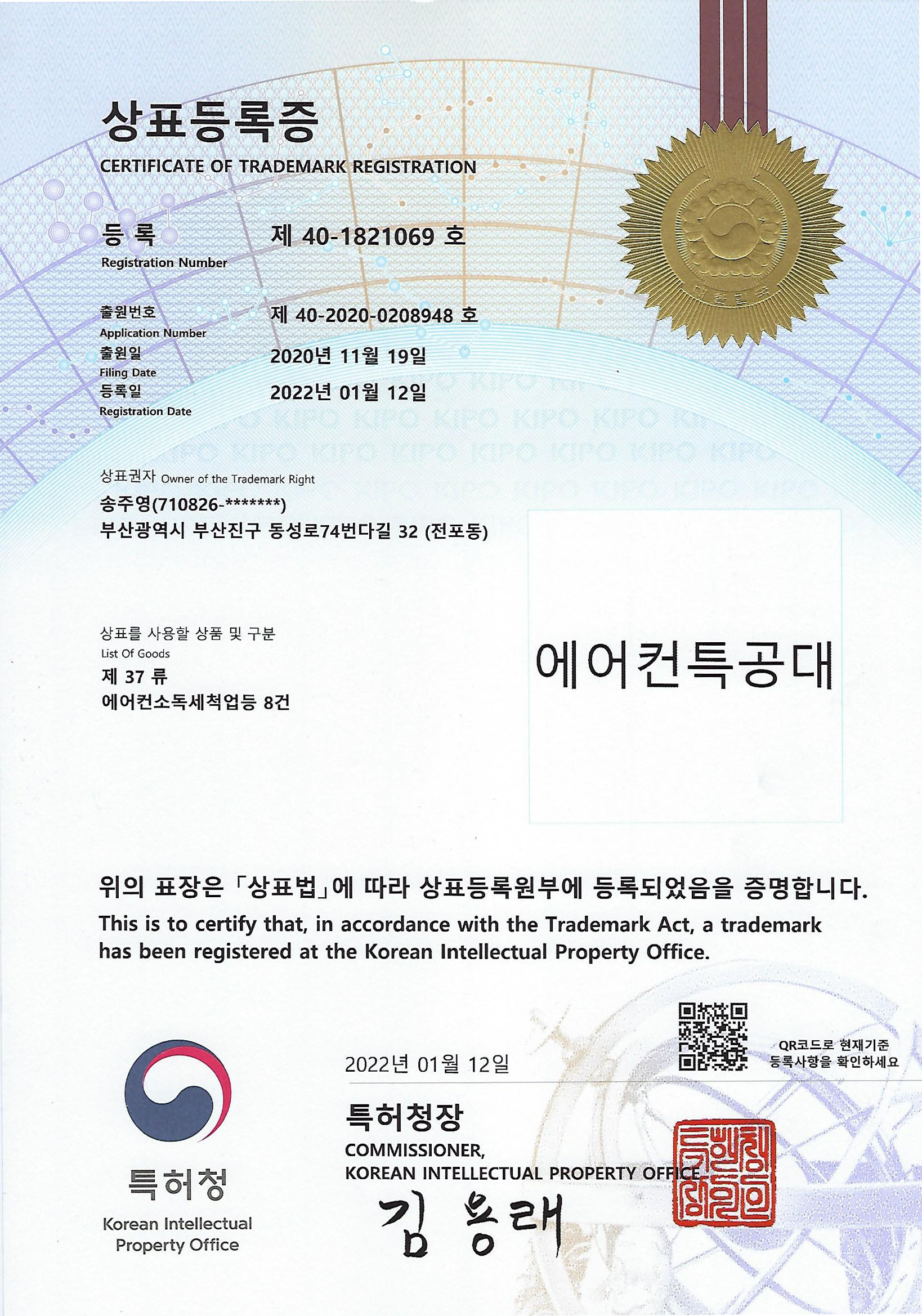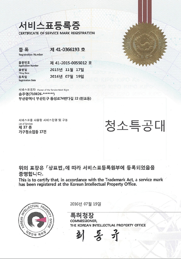 공신력 있는 인증으로 더욱 믿음직한 청소특공대를 이용해 보세요